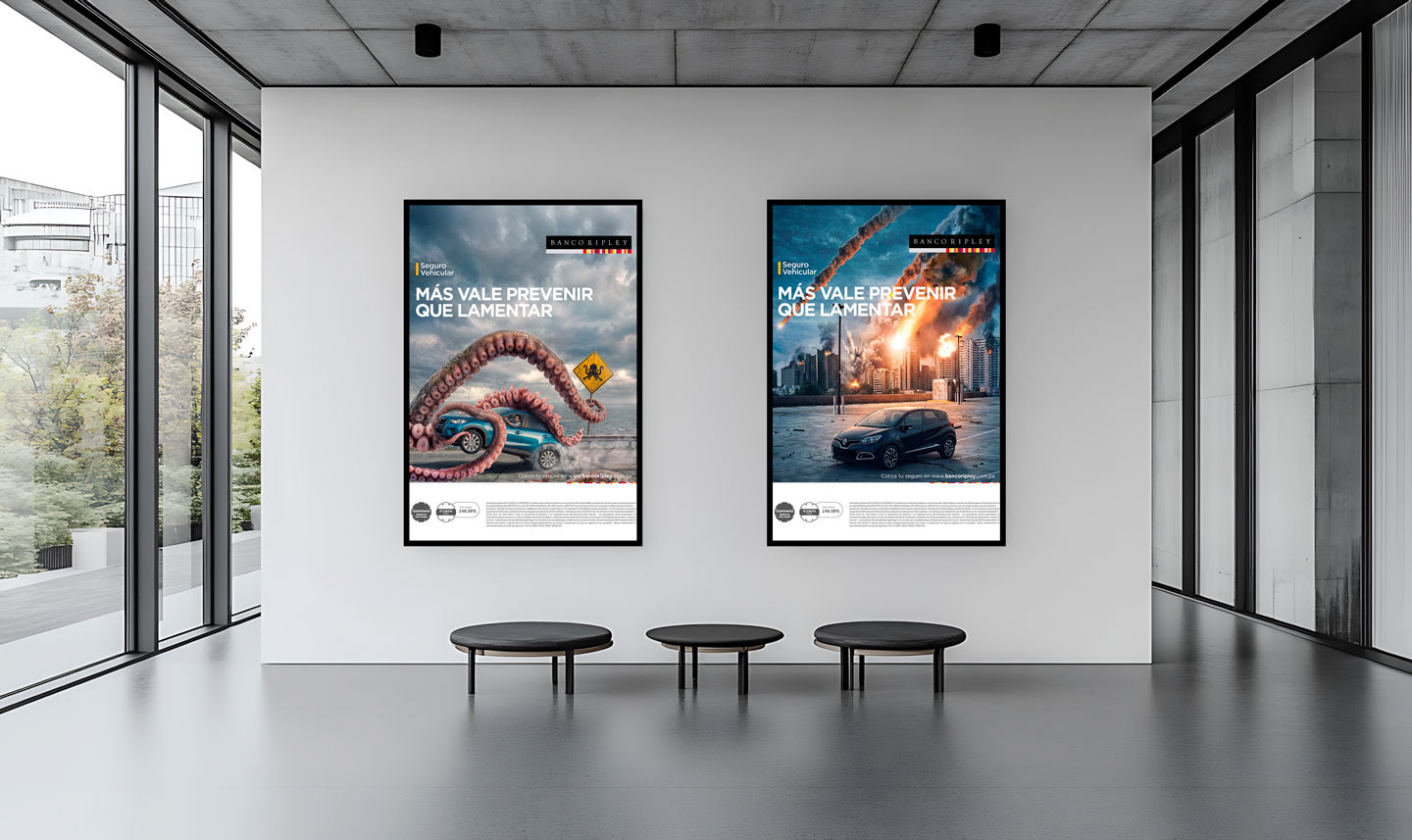 Campaña de lanzamiento de seguros vehiculares para Banco Ripley, que usa el humor para reforzar prevención y confianza, mostrando situaciones extraordinarias que destacan la amplia cobertura como diferencial del producto.